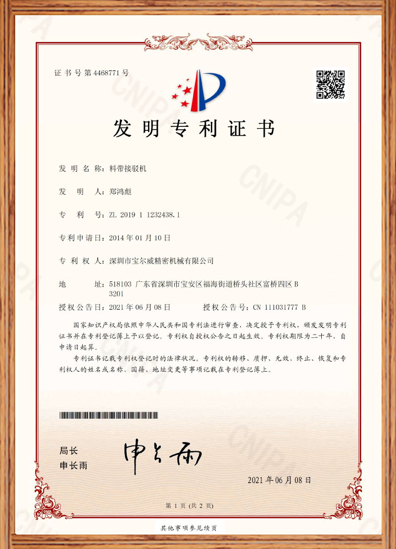 接料機發明專利通過審批