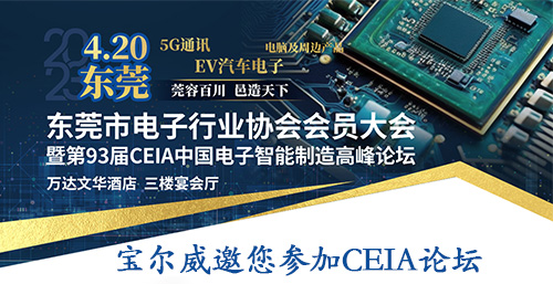 ?2023年4月20日,寶爾威將參加CEIA東莞場論壇,希望能與您在東莞相見。誠邀您能夠一同參加2023 CEIA中國電子智能智造東莞場高峰論壇